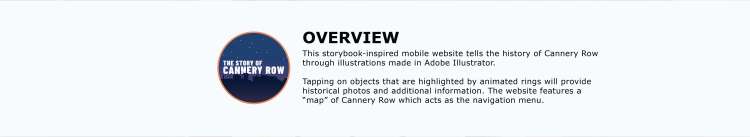 This storybook-inspired mobile website tells the history of Cannery Row through illustrations made in Adobe Illustrator.
